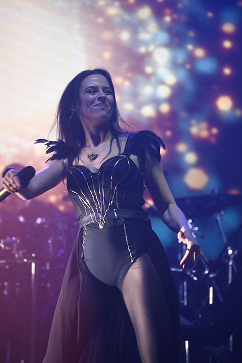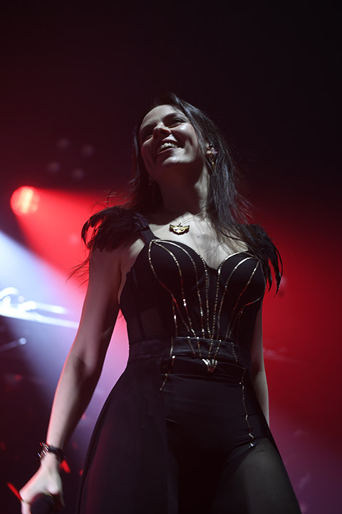 A sprinking of previous album songs fly by before a quiet interlude with electronic drums and synths of âWounded Healerâ seamlessly blending into one of my favourites from new album âRavensâ,sees Jennifer wearing large golden wings. The crowd alone are left to sing âwoah oh ohâ as the soing fades out,a fantastic anthem.